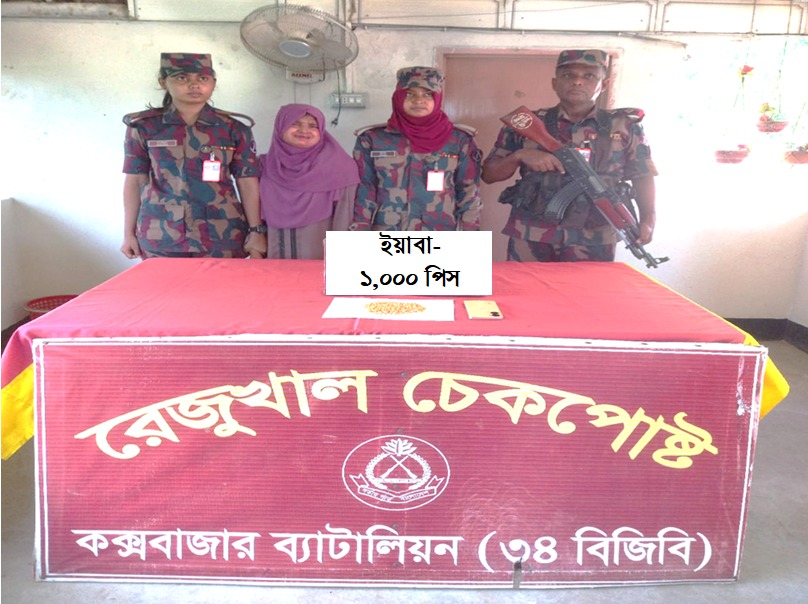নিজস্ব প্রতিবেদক: বর্ডার গার্ড বাংলাদেশ কক্সবাজার ব্যাটালিয়ন(৩৪ বিজিবি)’র রেজুখাল বিজিবি চেকপোস্টে অভিযান চালিয়ে এক হাজার পিস ইয়াবাসহ আয়েশা নামের এক